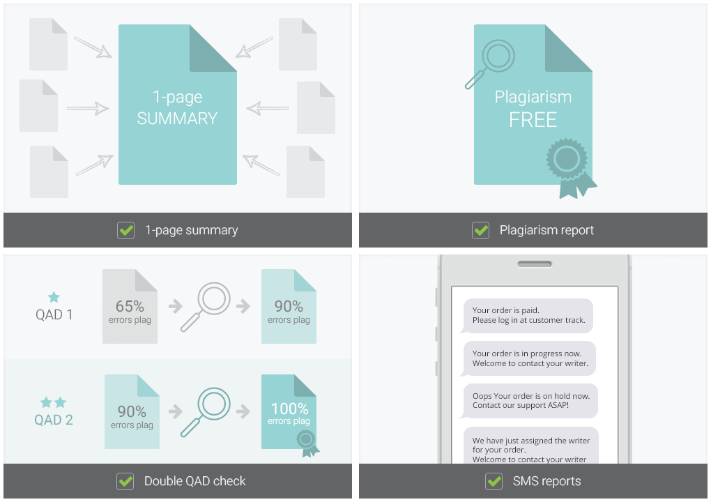 Besides, we have a Quality Assurance Department on board that checks every paper for plagiarism to ensure that it is 100% unique. These experts also make sure that all the paper requirements are met and that the final draft contains no mistakes.